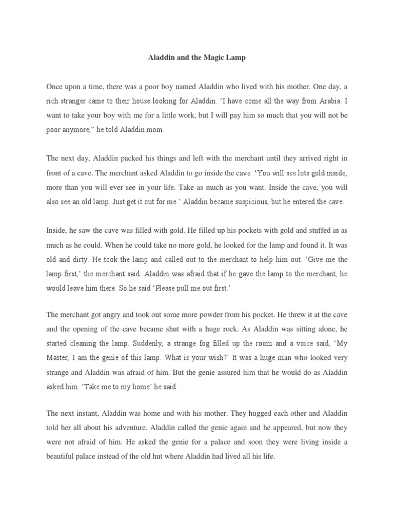 and the opening of the cave became shut with a huge rock. As Aladdin was sitting alone, he