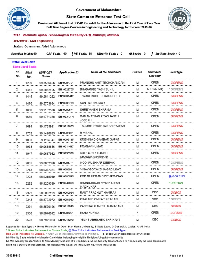 Merit No : State General Merit No. for Maharashtra Seats, All India Merit No. for All India Seats