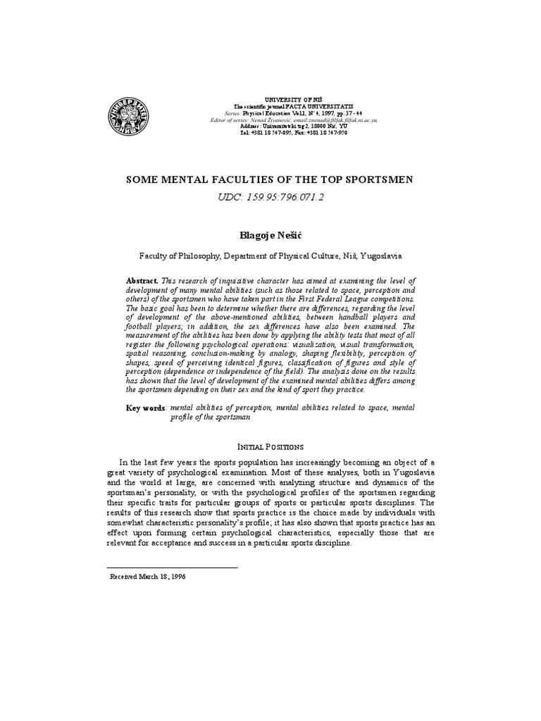 Some Mental Faculties of the Top Sportsmen 39