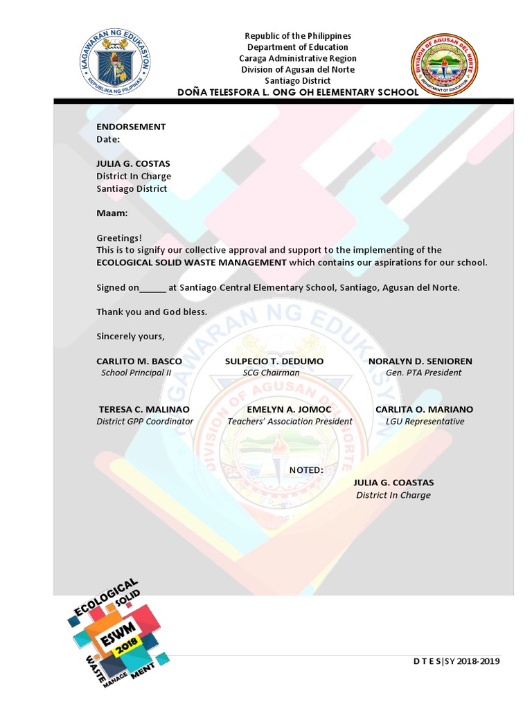 1. The Doña Telesfora L. Ong Oh Elementary School having so concerned with the