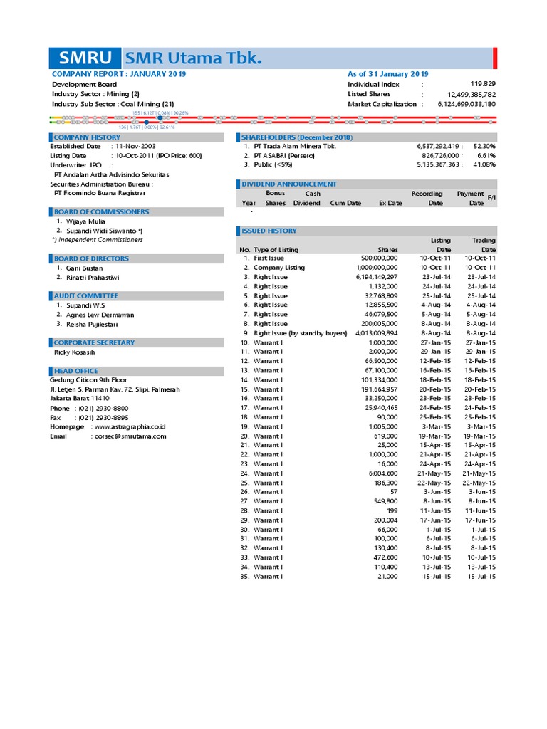 Established Date : 11-Nov-2003 1. PT Trada Alam Minera Tbk. 6,537,292,419 : 52.30%