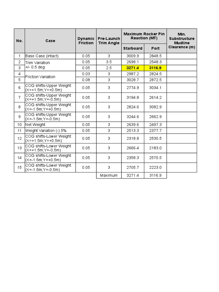 2 Pre-Tipp-1 SP1 79.70 -0.09 Rocker Arm at EL(-)62.8m, (-)91mm from COG