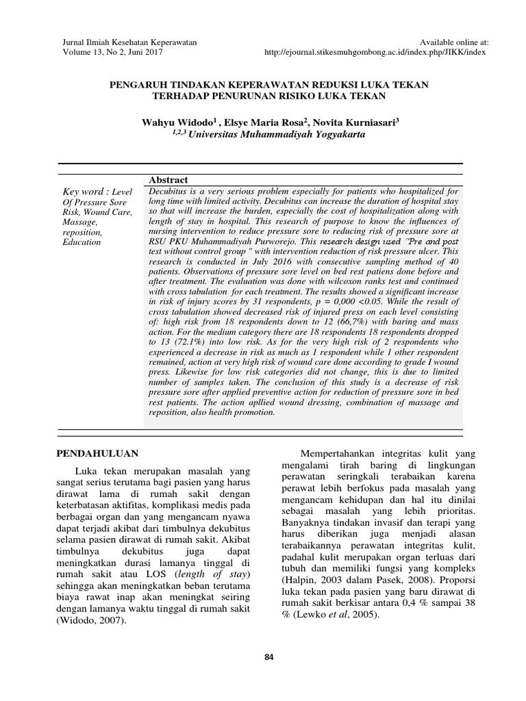Pengkajian Resiko Luka Tekan Metode Dekubitus di RSIS.Jurnal Penelitian