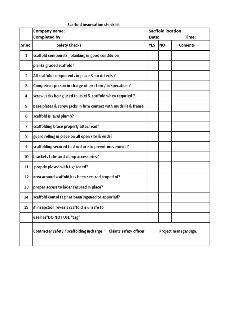 Contracter safety / scaffolding incharge Claints safety officer Project manager sign.