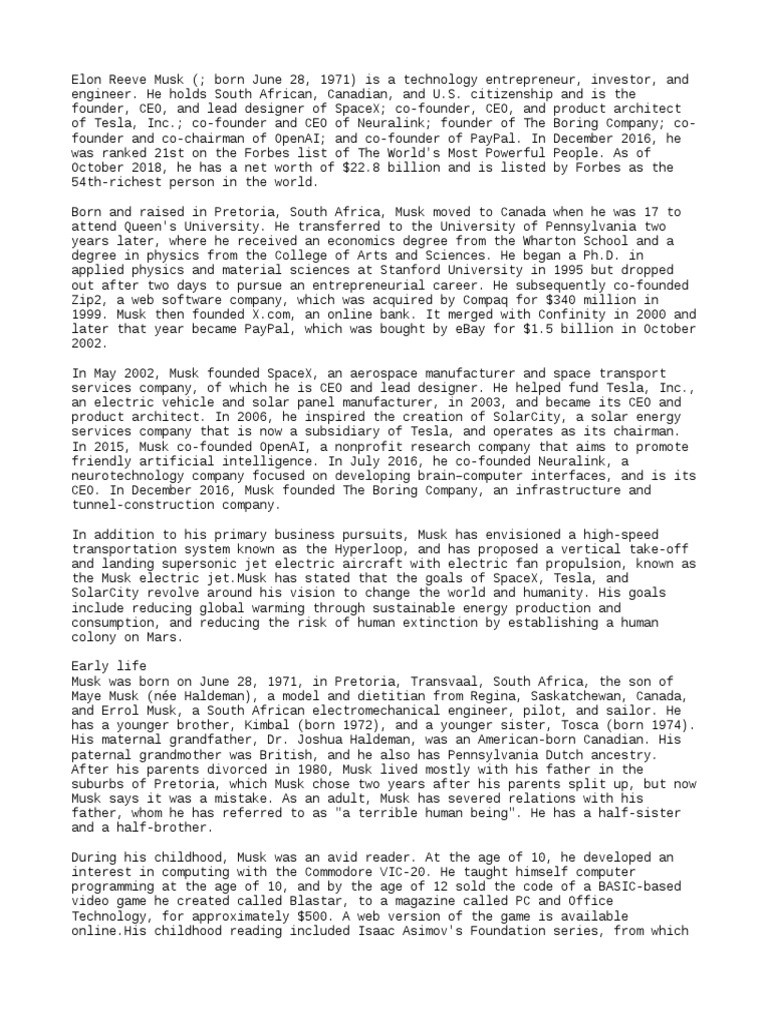 During his childhood, Musk was an avid reader. At the age of 10, he developed an