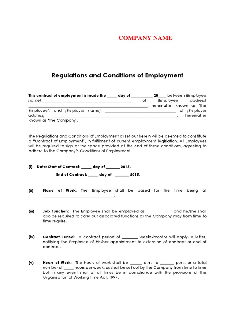 Regulations and Conditions of Employment