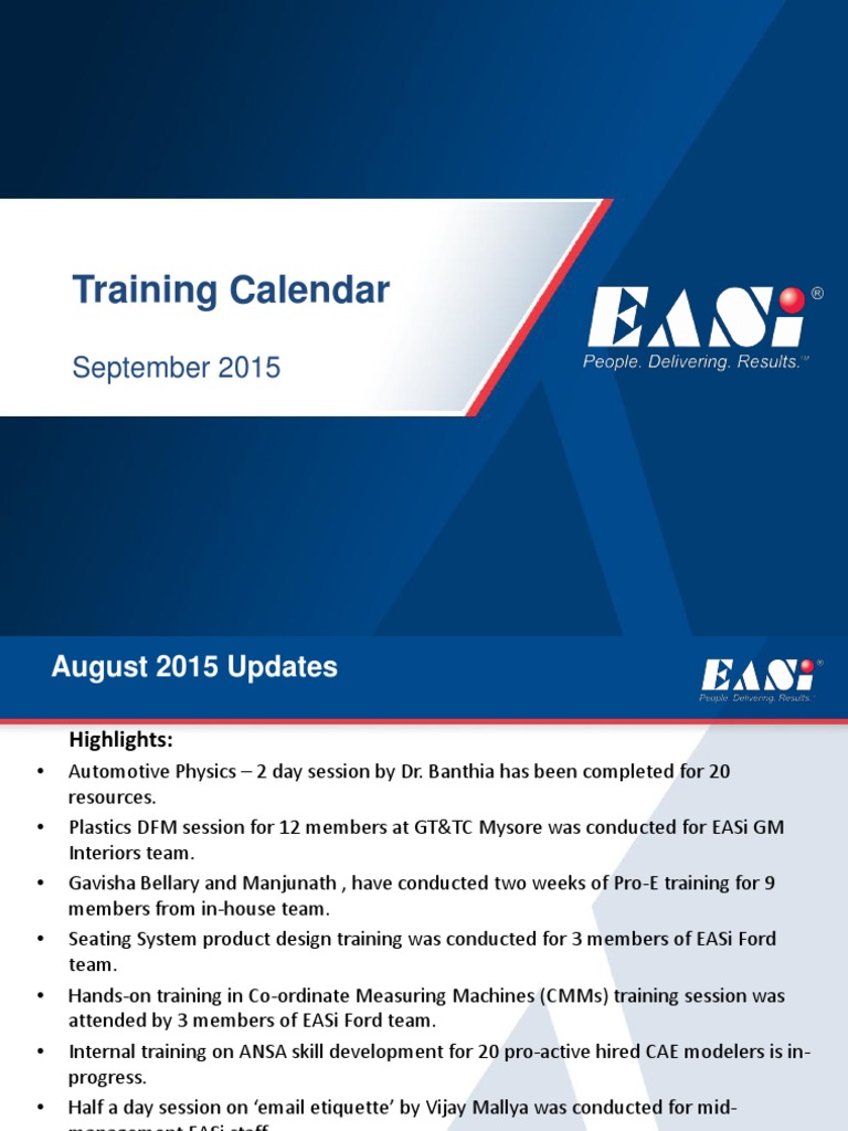 Training Calendar - September 2015