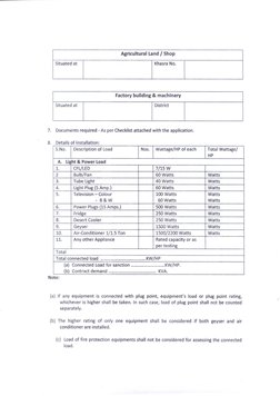 Application cum agreement form for new electric connection(Regular/Temporary) and other