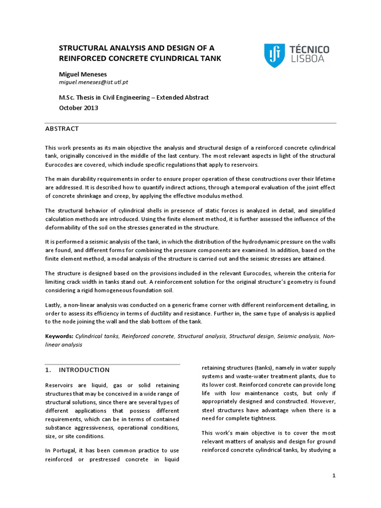 Keywords: Cylindrical tanks, Reinforced concrete, Structural analysis, Structural design, Seismic analysis, Non-