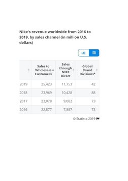 Comparing NIKE’s distribution channels, direct sales to the consumer provide higher