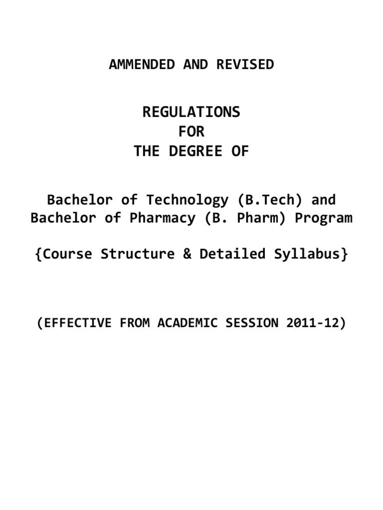 Bachelor of Pharmaacy (B.Pharma). These regulations are effective for the batches