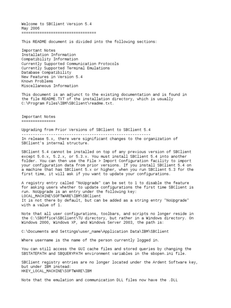preference, see the IBM U2 SBClient 5.4 New Features manual on the