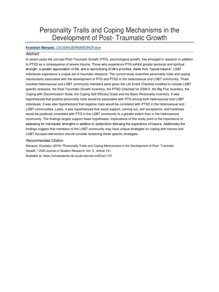 Marquez, Krystalyn (2019) "Personality Traits and Coping Mechanisms in the Development of Post- Traumatic