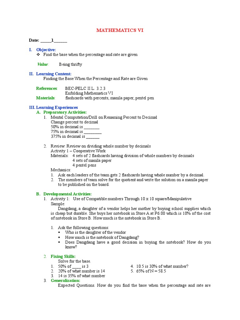 Finding Base and Percentage in Math VI