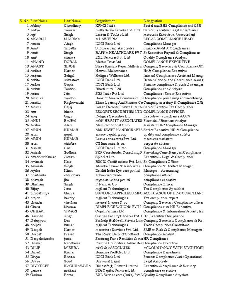 Compliance yogics25@gmail.com +91 9818727436 Delhi India 1 Yr