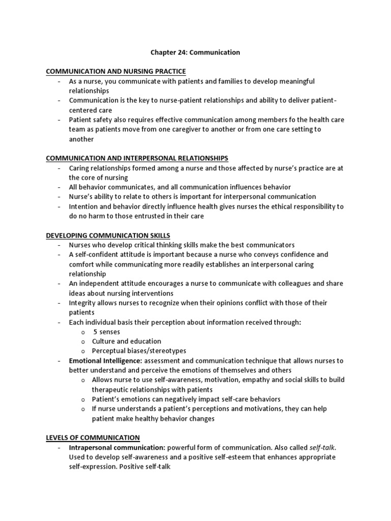 - Interpersonal communication: one-on-one interaction between nurse and another