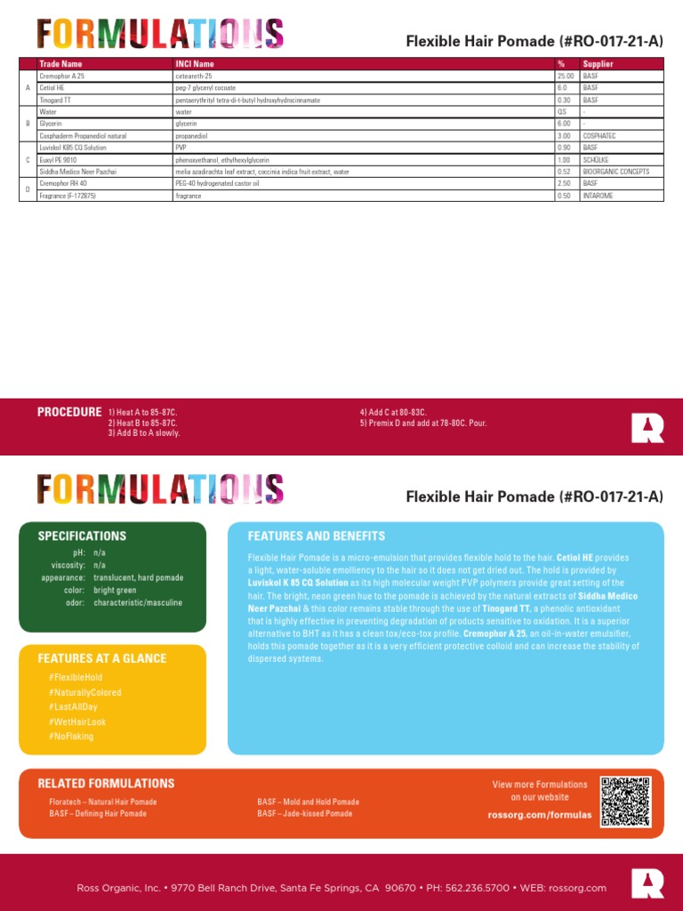 BASF – Defining Hair Pomade BASF – Jade-kissed Pomade rossorg.com/formulas
