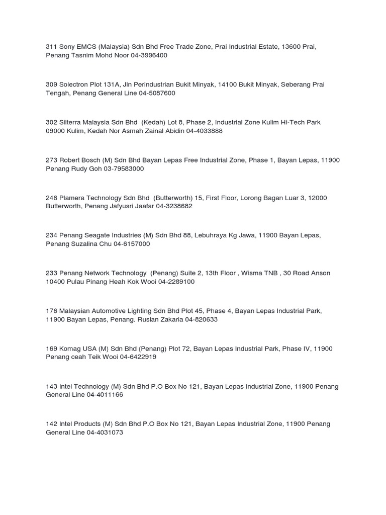 169 Komag USA (M) Sdn Bhd (Penang) Plot 72, Bayan Lepas Industrial Park, Phase IV, 11900