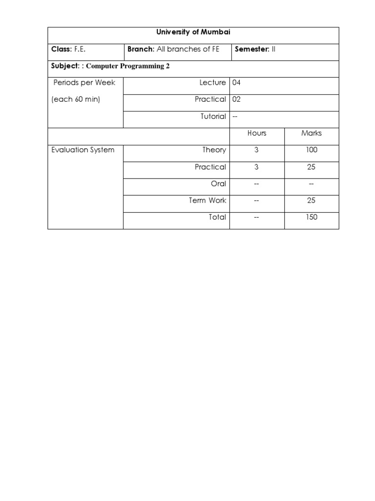 Subject: : Computer Programming 2