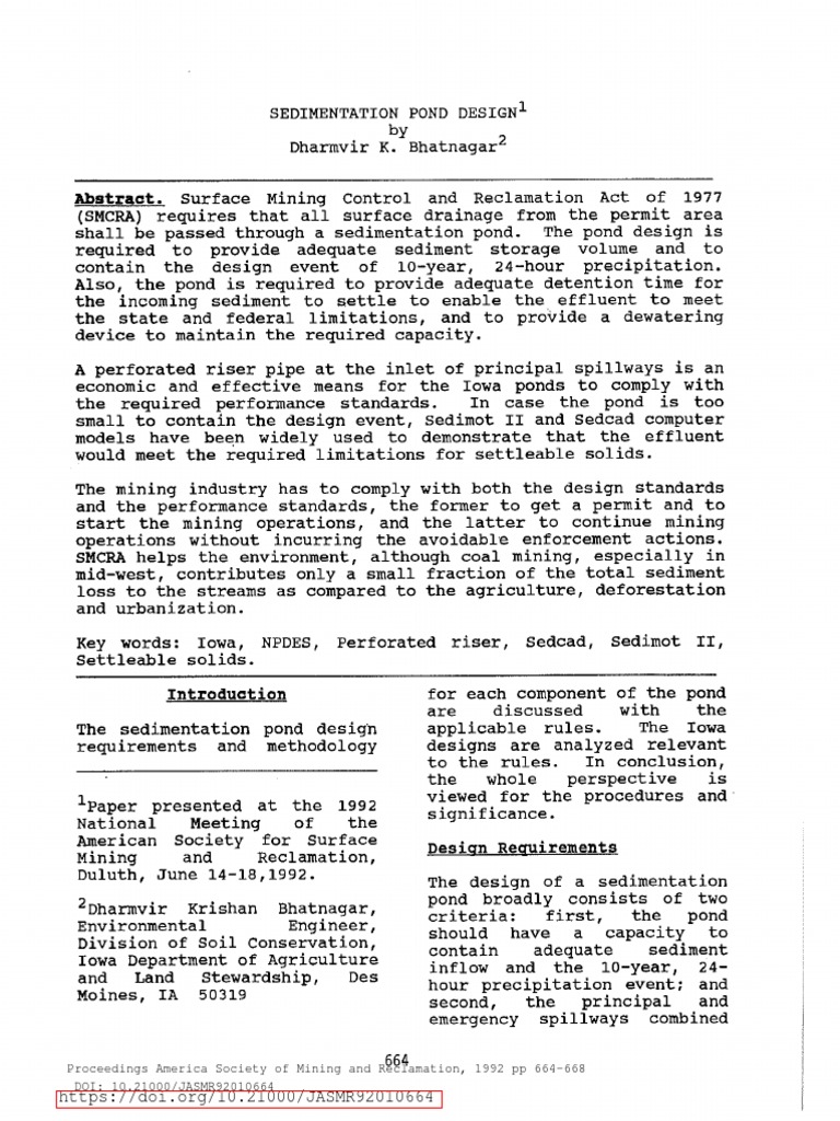 sedimentation pond designs of deposition, of soil