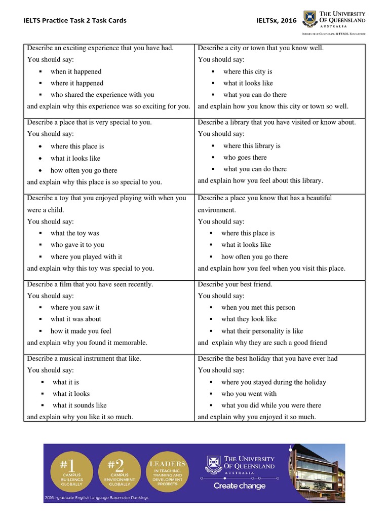 IELTS Practice Task 2 Task Cards IELTSx, 2016