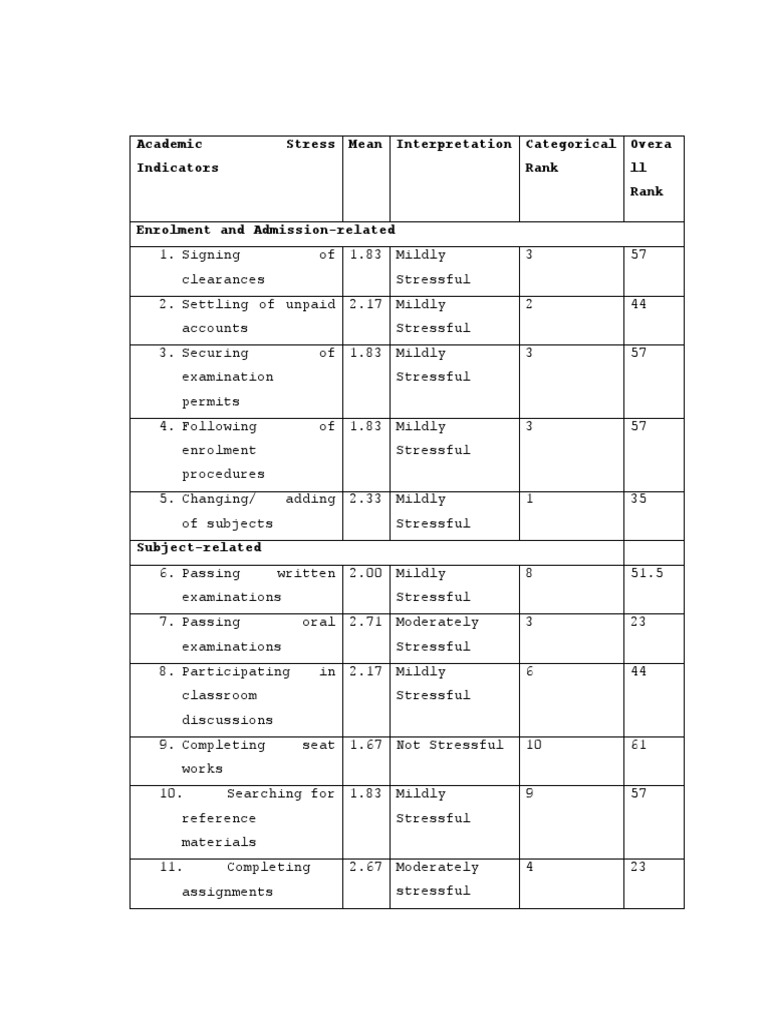Academic Stress Mean Interpretation Categorical Overa