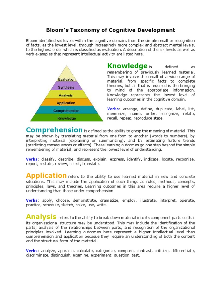 Bloom's Taxonomy of Cognitive Development