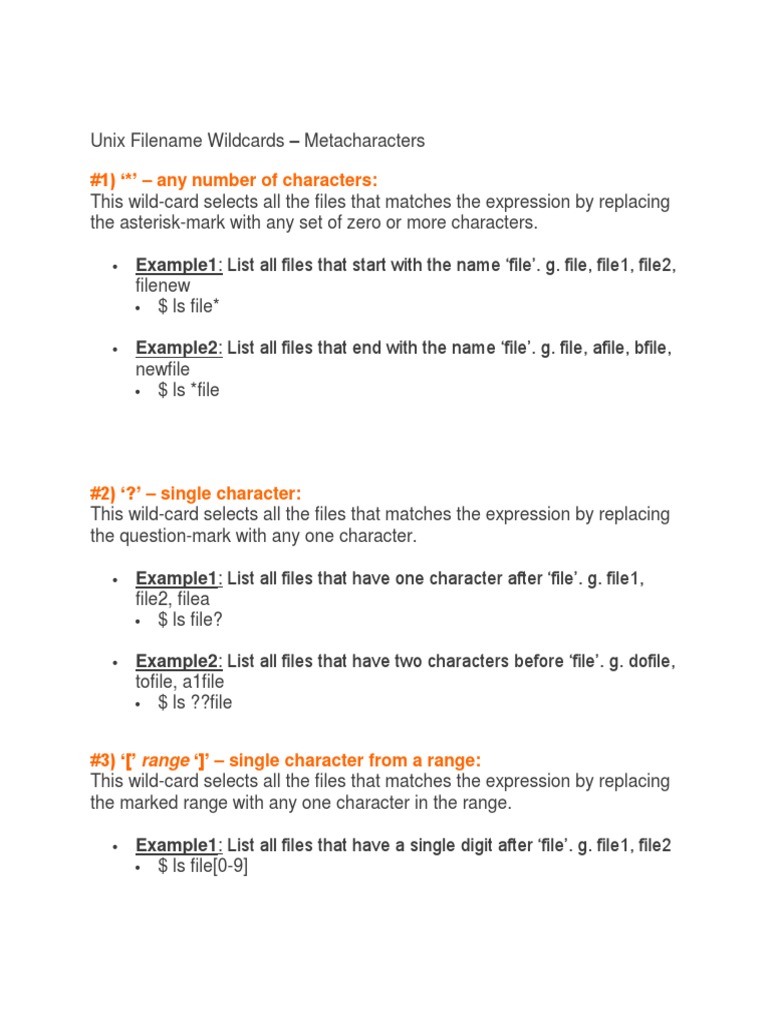 Example1: List all files that start with the name ‘file’. g. file, file1, file2,