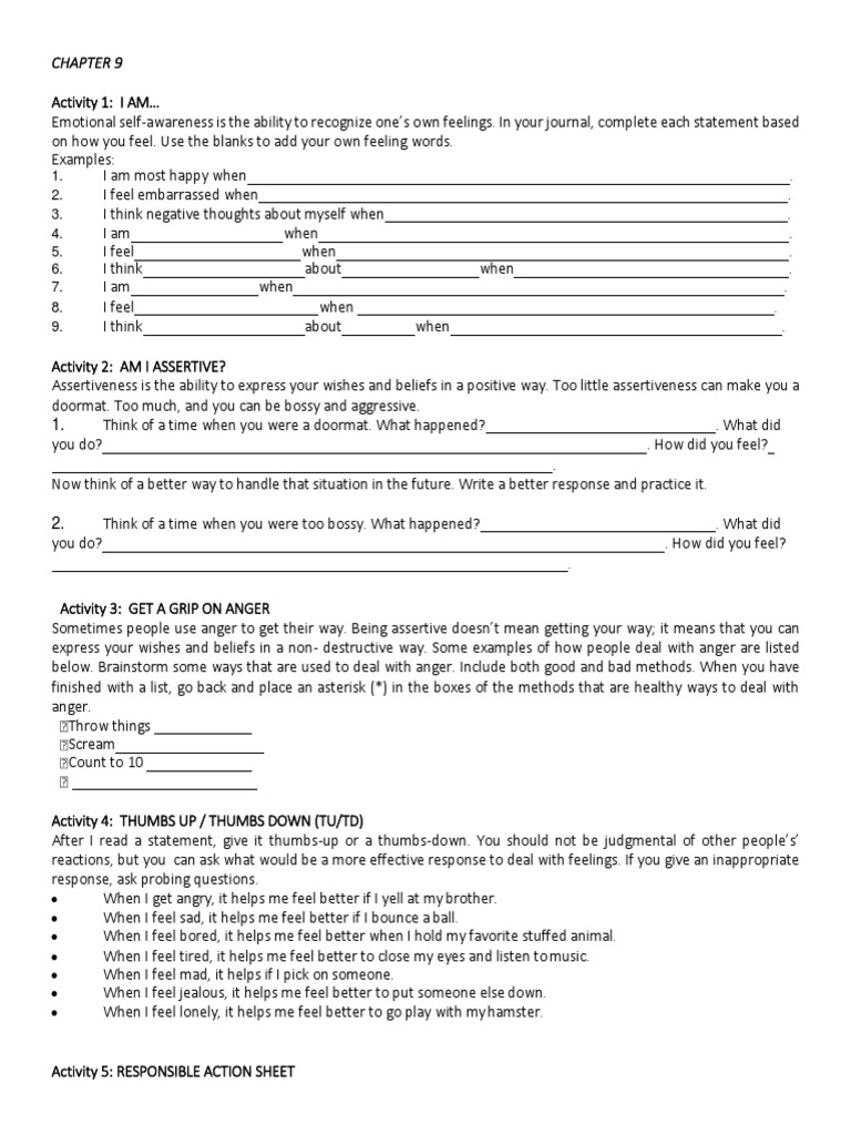 express your wishes and beliefs in a non- destructive way. Some examples of how people deal with anger are listed