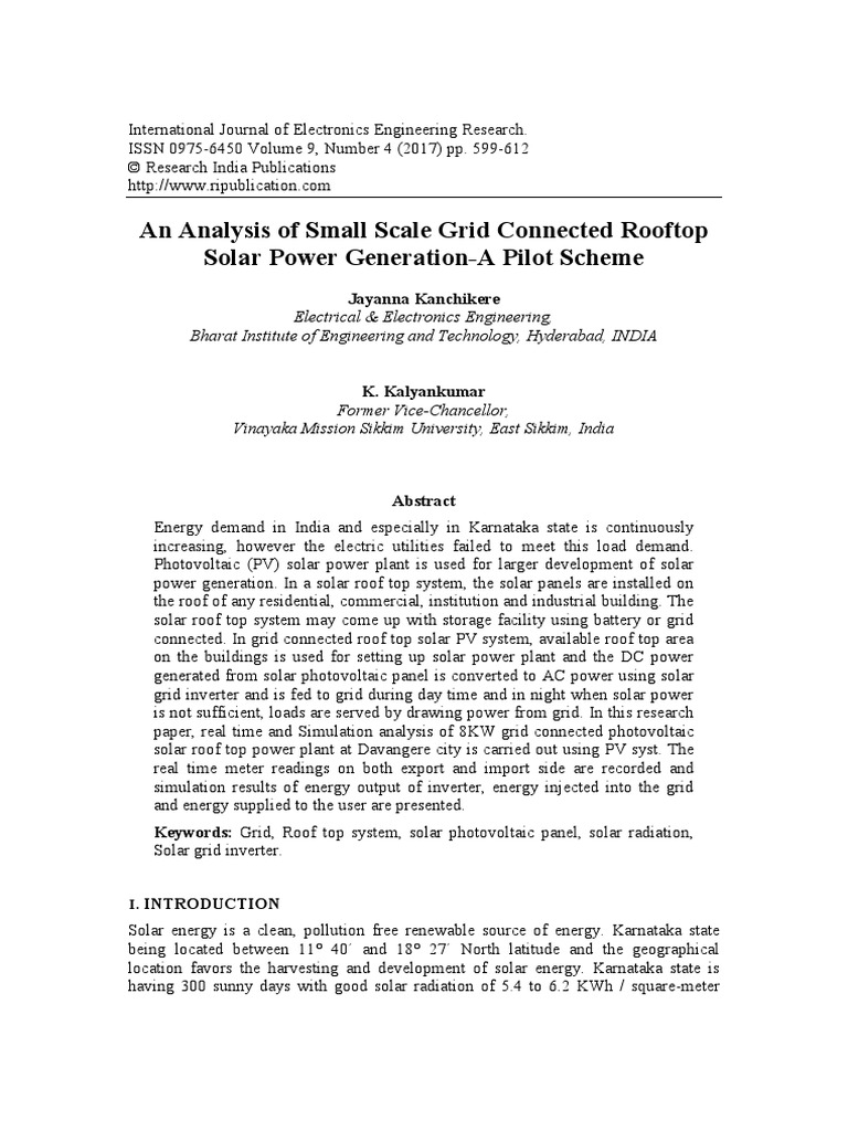 [2] Jayanna Kanchikere, kotresh K and K KalyanKumar, “A 5KW photovoltaic