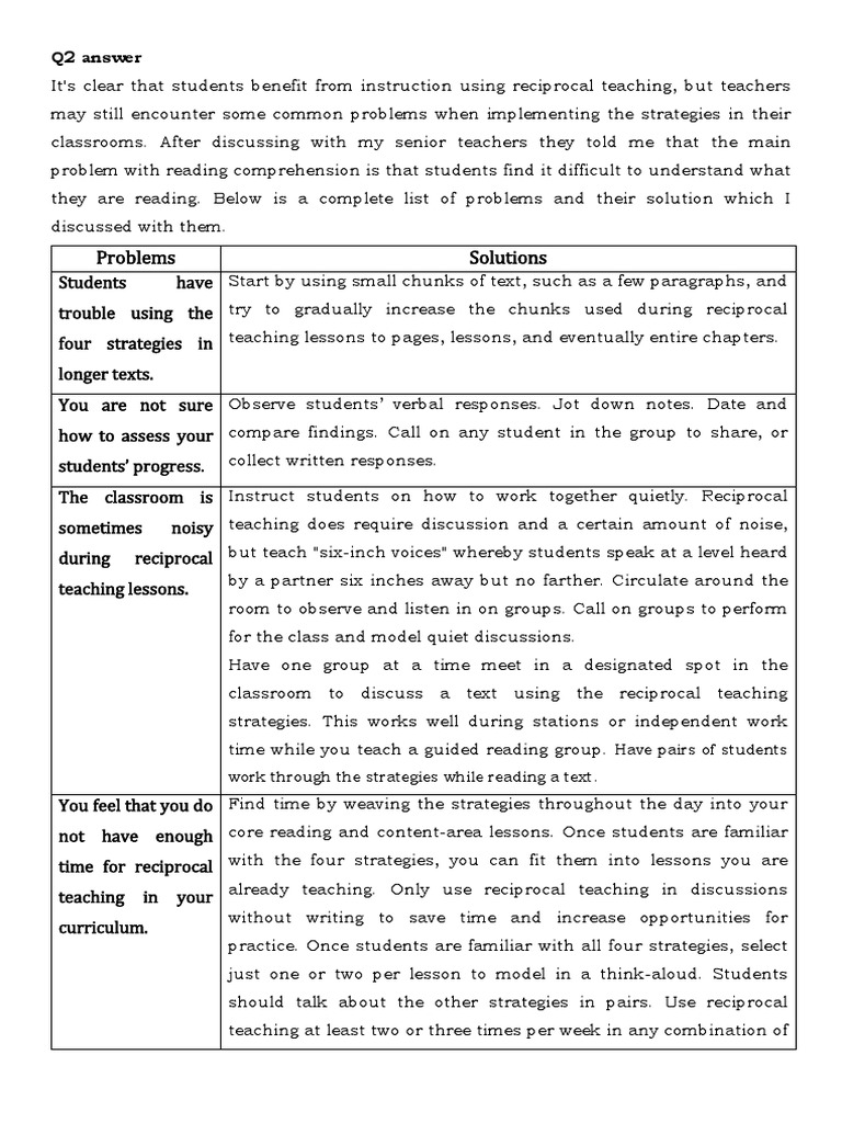 teaching in your already teaching. Only use reciprocal teaching in discussions