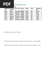 Write SQL queries for (a) to (f) and write the outputs for the SQL queries mentioned shown