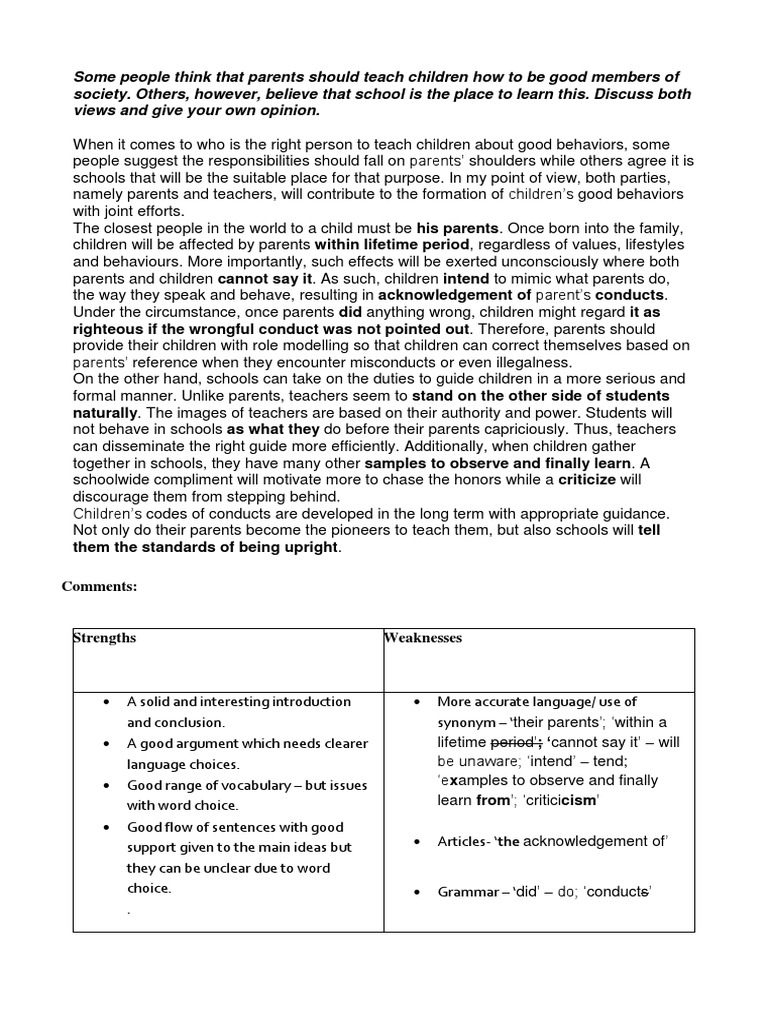 society. Others, however, believe that school is the place to learn this. Discuss both