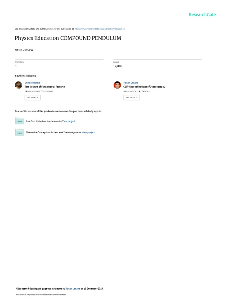 (TIFR), Mumbai in May 2010. Generally, the compound pendulum studied in undergraduate