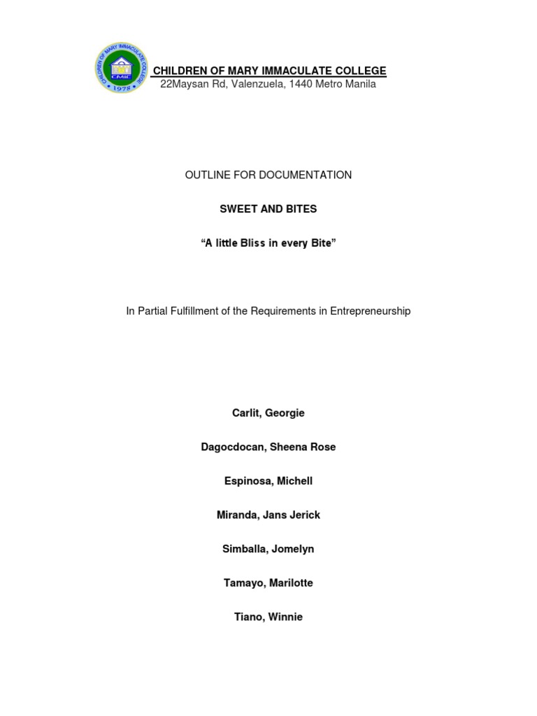 In Partial Fulfillment of the Requirements in Entrepreneurship