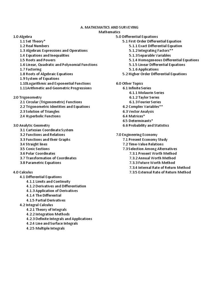 1.0 Algebra 5.0 Differential Equations