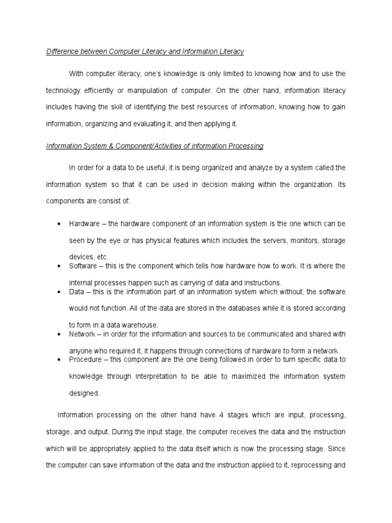 technology efficiently or manipulation of computer. On the other hand, information literacy