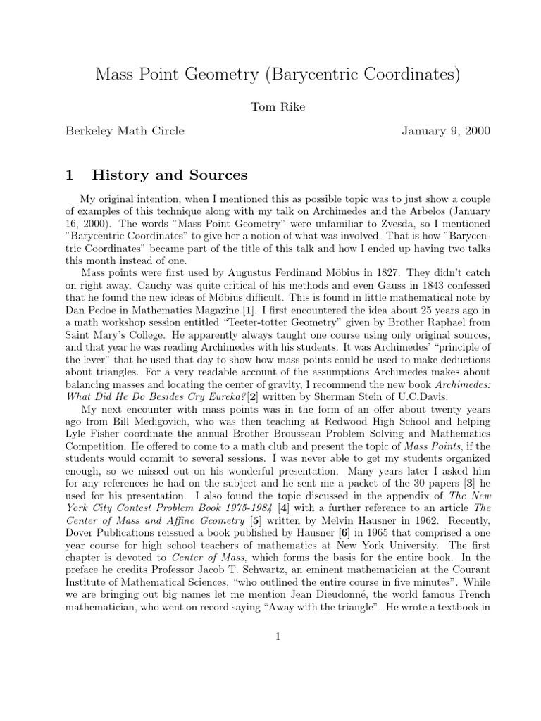 16, 2000). The words ”Mass Point Geometry” were unfamiliar to Zvesda, so I mentioned