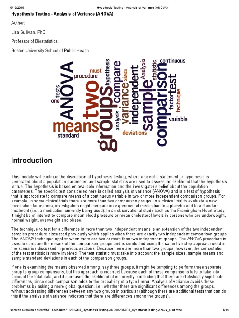 9/19/2019 Hypothesis Testing - Analysis of Variance (ANOVA)