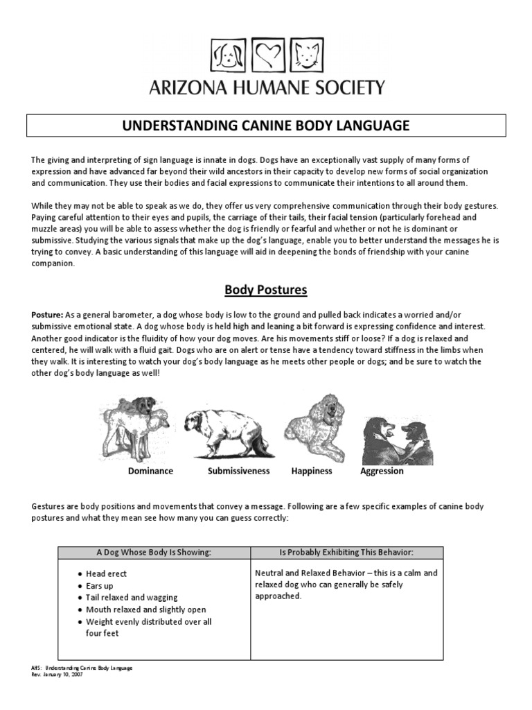 trying to convey. A basic understanding of this language will aid in deepening the bonds of friendship with your canine