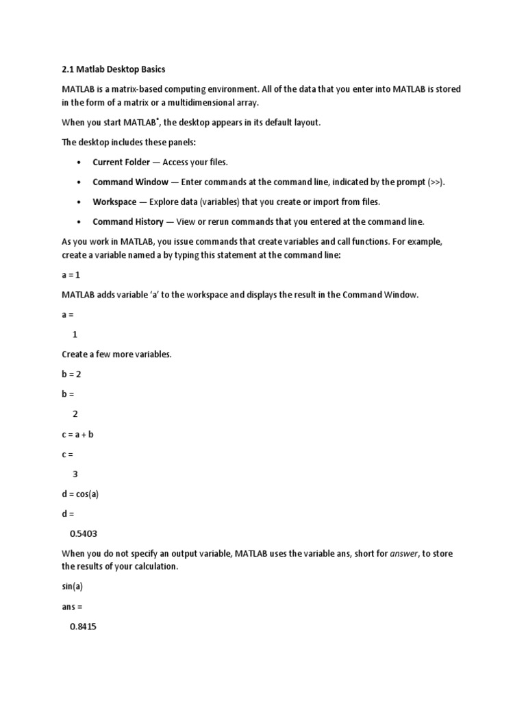 1 Matlab Desktop Basics