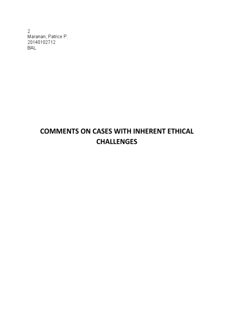 COMMENTS ON CASES WITH INHERENT ETHICAL