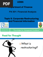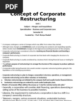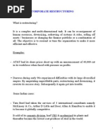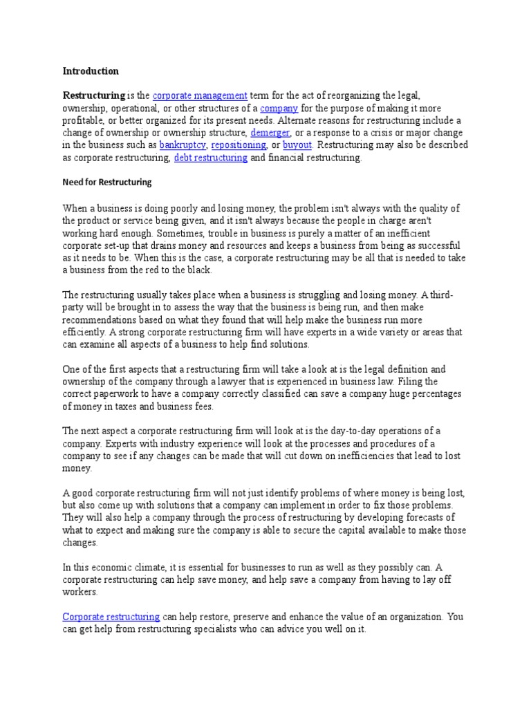 in the business such as bankruptcy, repositioning, or buyout. Restructuring may also be described
