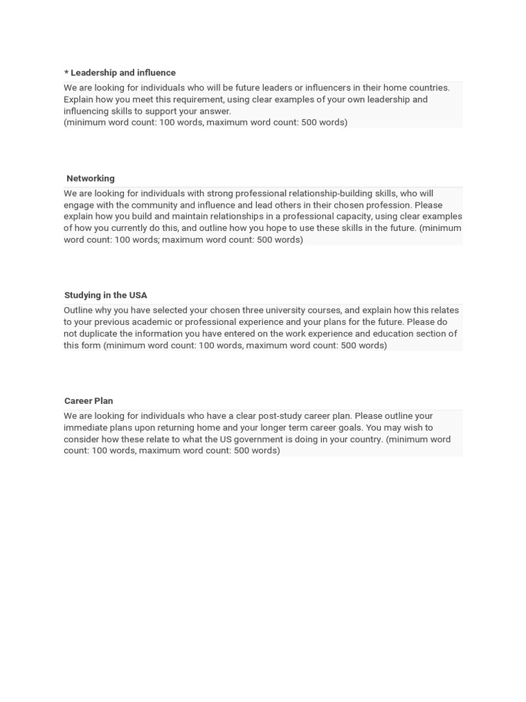 We are looking for individuals who will be future leaders or influencers in their home countries.