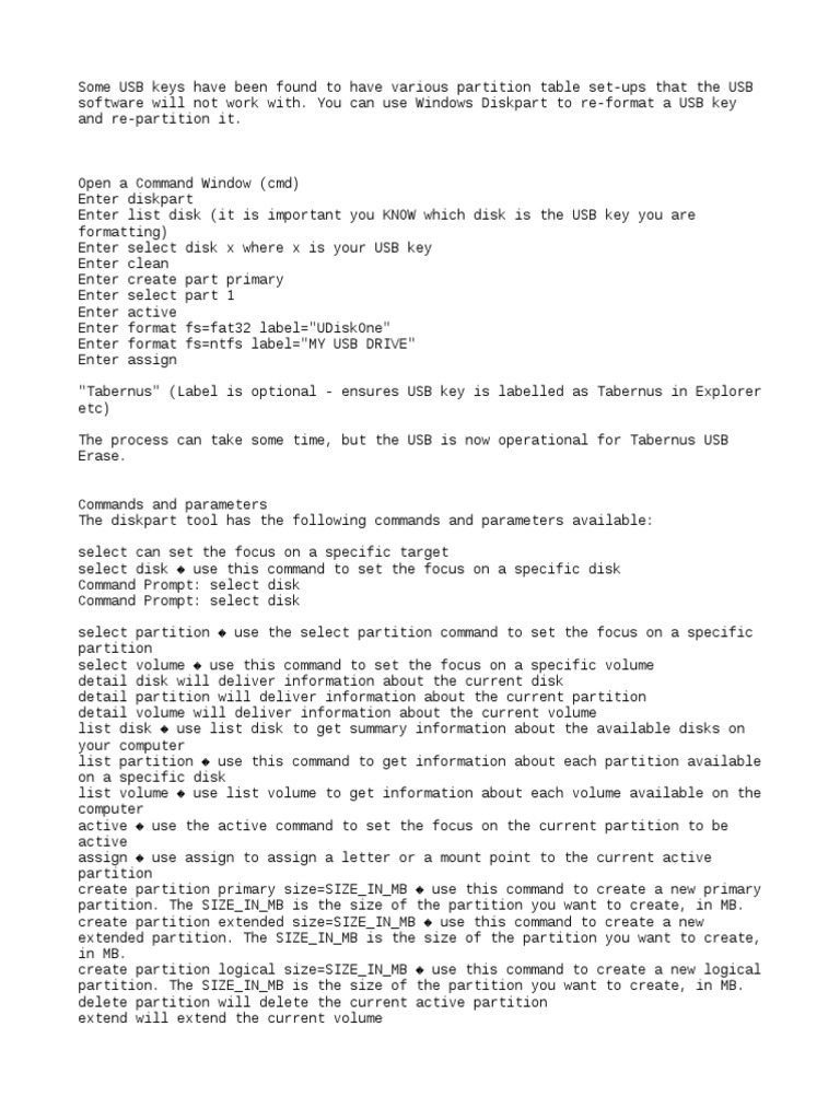 "Tabernus" (Label is optional - ensures USB key is labelled as Tabernus in Explorer