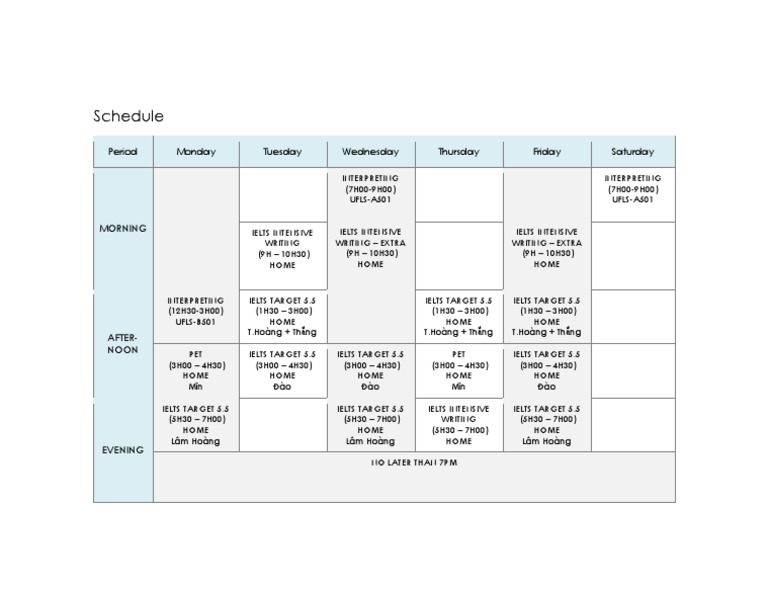 Period Monday Tuesday Wednesday Thursday Friday Saturday