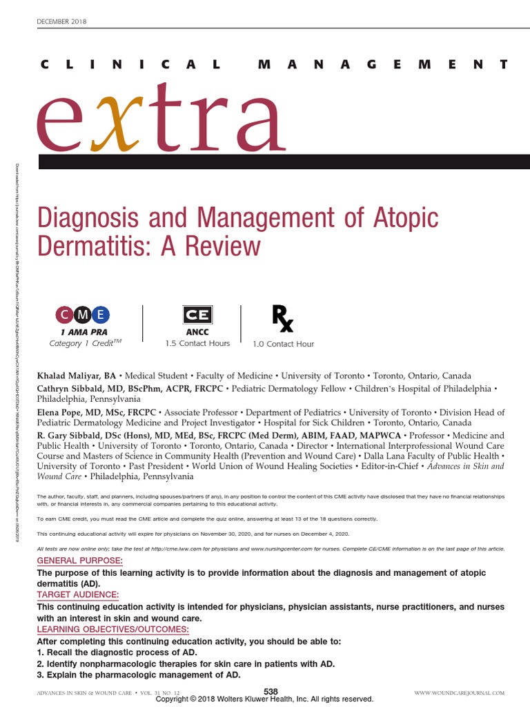 The purpose of this learning activity is to provide information about the diagnosis and management of atopic