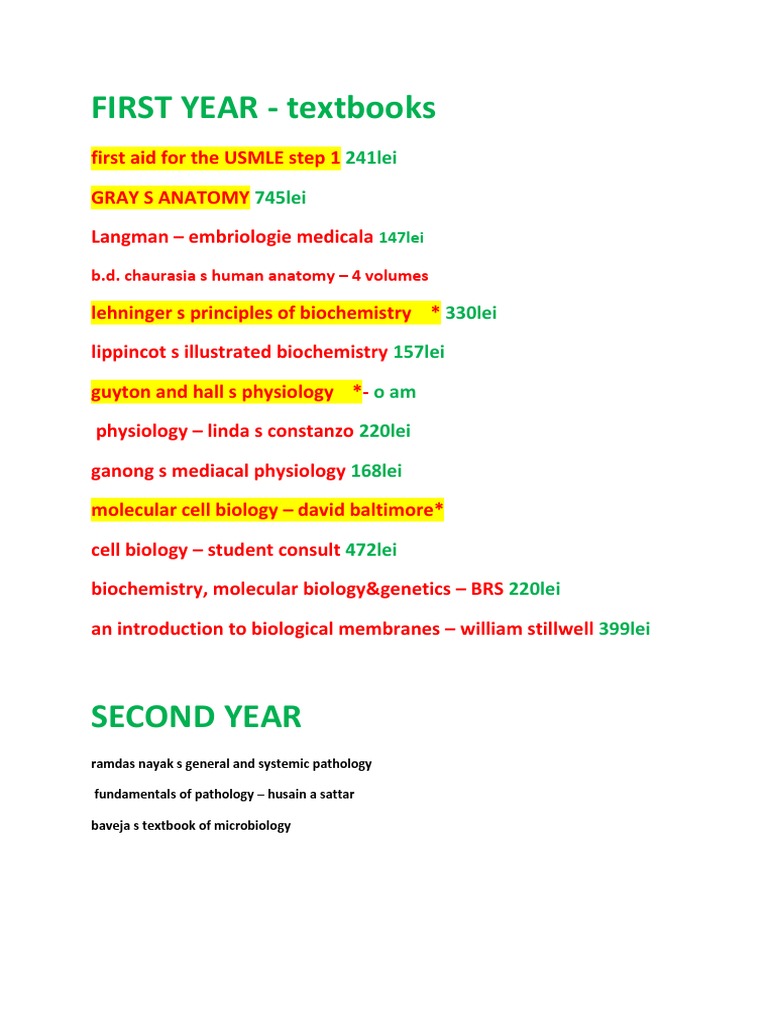 FIRST YEAR - textbooks