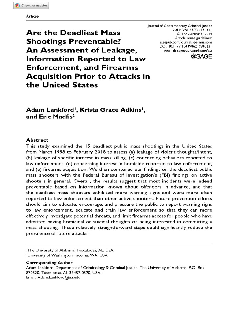 Schweit, 2014; Kelly, 2012; Lankford, 2016b). This makes preemptively identifying