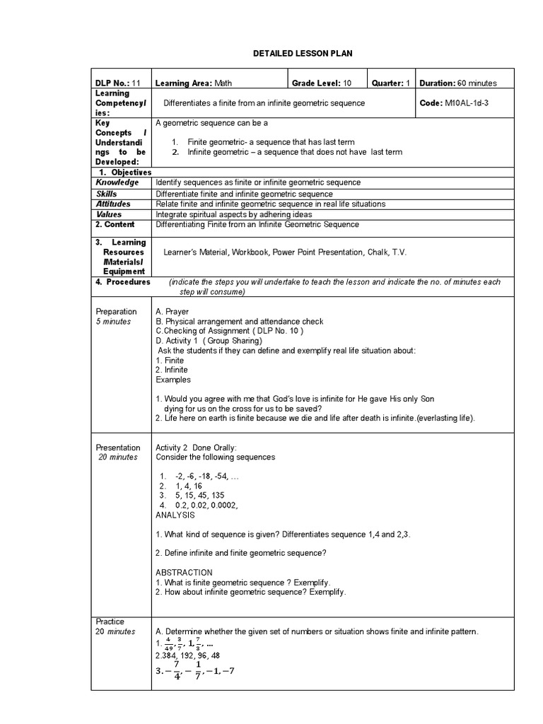 Competency/ Differentiates a finite from an infinite geometric sequence Code: M10AL-1d-3